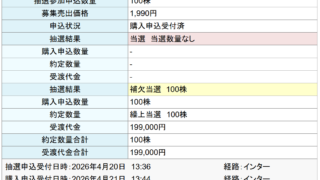 今年から頑張って参戦するするといいつつあまり抽選に参加できていなかったPOですが、大和証券から貰っていた補欠当選が繰り上がりになっていました。で、翌日の前場で2100円くらいを付けていたので、寝る前に2070円とかのPO価格が決まる前の終値...