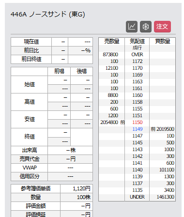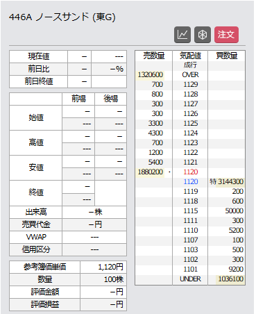 今日は大和証券から補欠当選から繰上当選したノースサンド(444A)の上場日でした。当日でないと売り注文が出せないようだったので、頑張って早起きして売り注文を出しました。