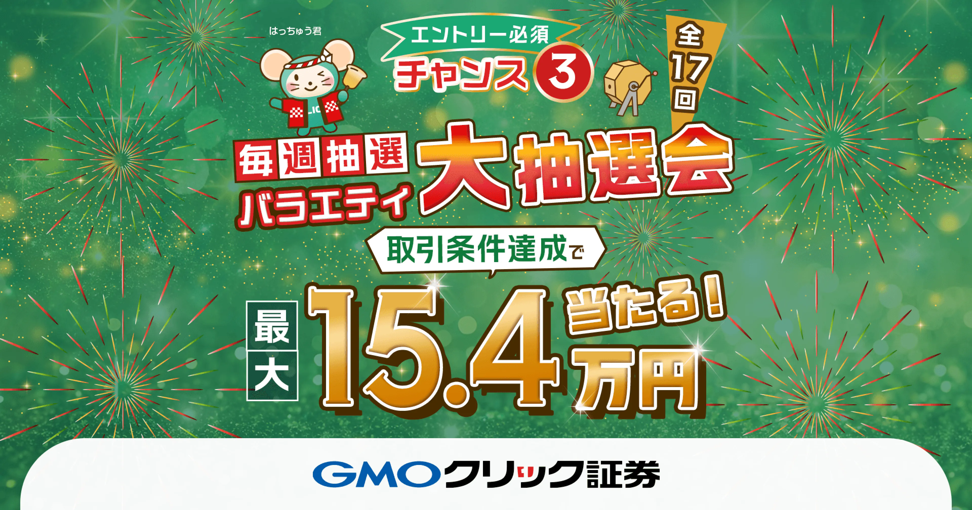 GMOクリック証券でトレードしている人が少ないからかそこそこの頻度で当選するとは聞いていたのですがしょっぱなからこの感じだといい小銭拾いになりそうと思ってしまいました。
