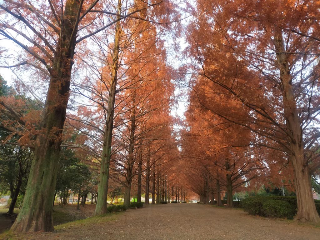 メタセコイア並木と言えば滋賀県高島市にあるのが有名ですが、滋賀県の北の方にあるので行くのが大変なんですよね。あちらの方が並木の本数が多かったりでいいのですが、こちらでも十分に綺麗です。