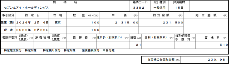 [株主優待クロス取引]2026年2月の株主優待クロス取引の結果
