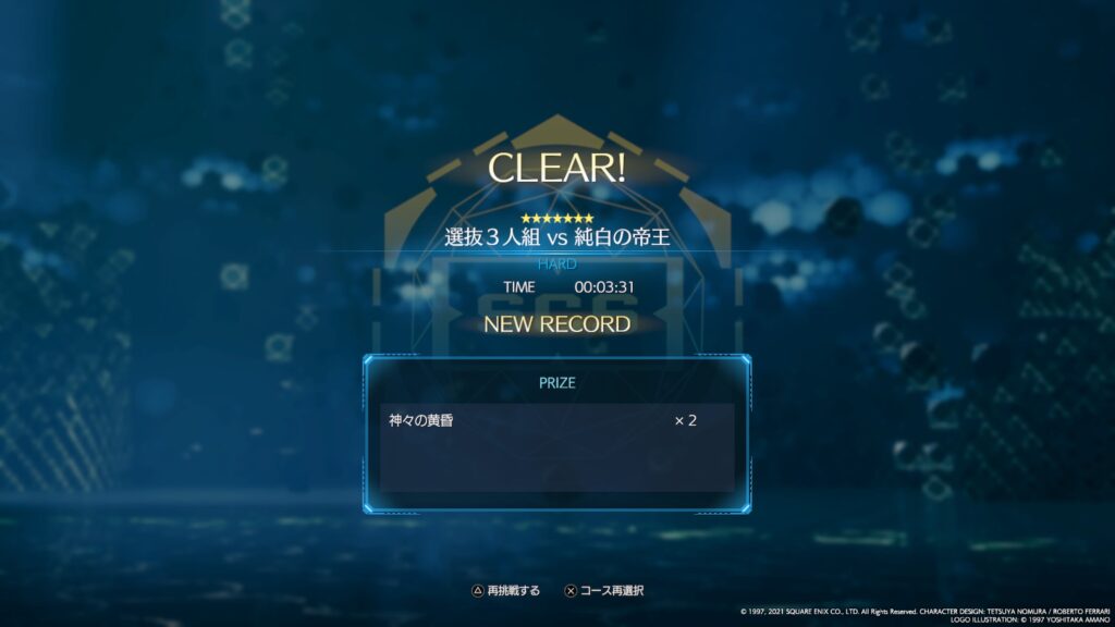 第2形態の銃モードでイフリートさんを召喚したのが効いたのか、魔法陣の上での魔法攻撃が効いたのか、いつの間にかヴァイスさんのHPもそれなりに減っていて、モードチェンジされる前のバーストからのクラウドさんのブレイバー(推定)でフィニッシュでした。