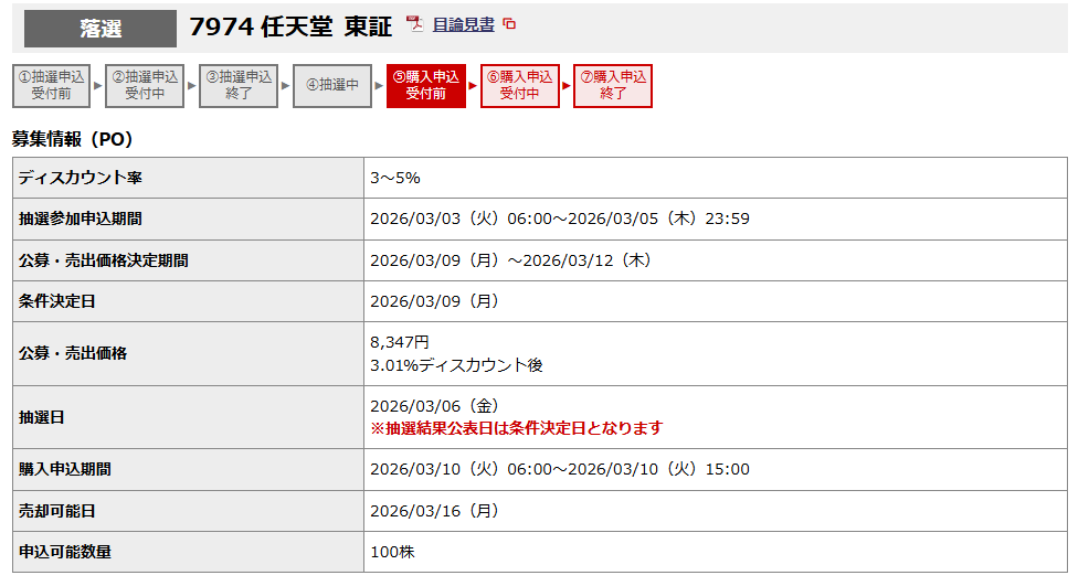 任天堂が発表していた公募増資ですが、主幹事の野村證券から無事に落選を頂きました。今年からPOはボチボチと抽選に参加しているのですが当たらないものですね。貸借銘柄だと勝率80%ほどで勝てるので手堅い投資ということもあって競争率が高いのでしょうね。