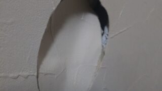 未分類 新たなイライラムーブで再び壁殴り、今回は壁に穴が開きました(しろめ)
